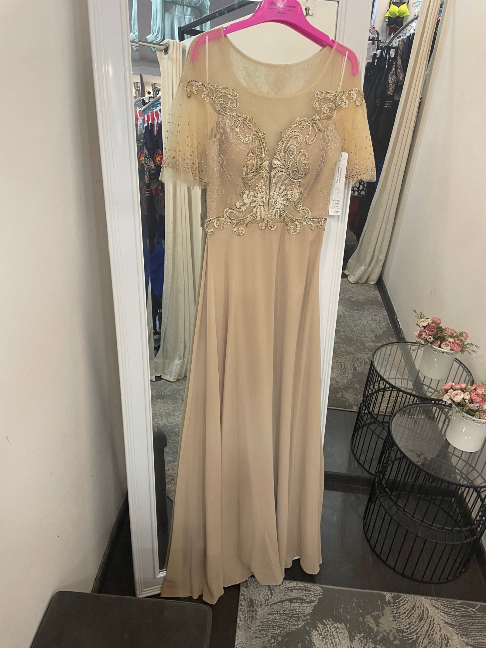 • Medžiaga: viršus su nėriniais ir karoliukais, apačia – lengvas šifonas