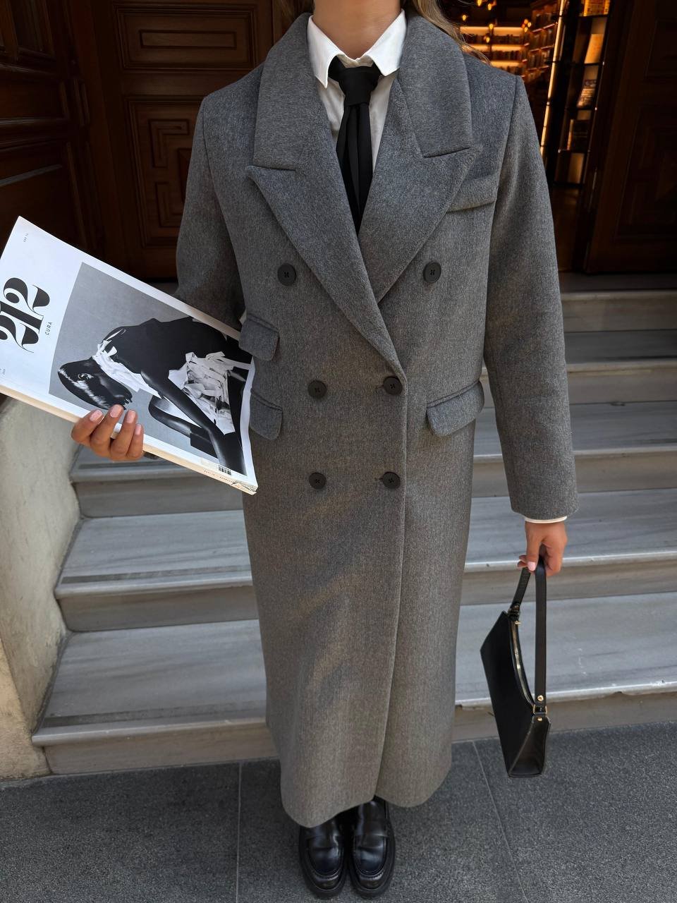 Elegantiškas, struktūriškas ir visada madingas pilkas oversize modelio ilgas paltas – tobula investicija tiek į kasdienį, tiek į dalykišką garderobą.